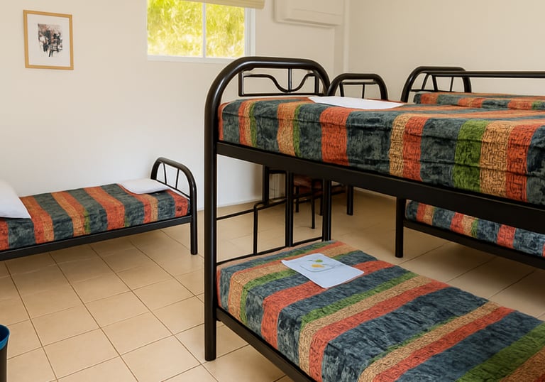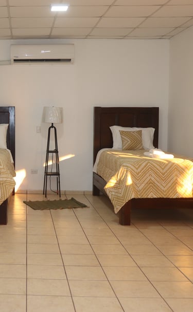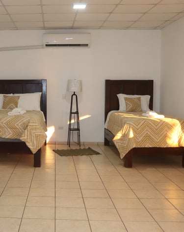 Pensadas para grupos, viajeros solos, surfistas y quienes buscan una opción práctica y económica sin sacrificar seguridad ni comodidad. Cada habitación compartida cuenta con camas múltiples y su propio baño privado.